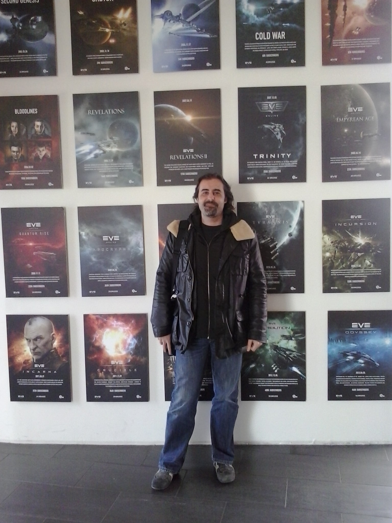 Como anécdota adicional, en mayo de 2015 el trabajo me llevó a Reikiavik y por supuesto no pude dejar pasar la oportunidad de hacer un poco de turismo friki y personarme en las oficinas de CCP Games. Me hubiera gustado que tuvieran algún tour organizado por las instalaciones o algo así, pero por desgracia, no era el caso. La secretaria fue tan amable de hacerme unas fotos en el recibidor, con el muro cubierto por todas las expansiones del juego hasta la fecha. Para los que os lo preguntéis sí, era Mayo, y sí, hacía frío, unos 5-10 grados si no recuerdo mal 😝